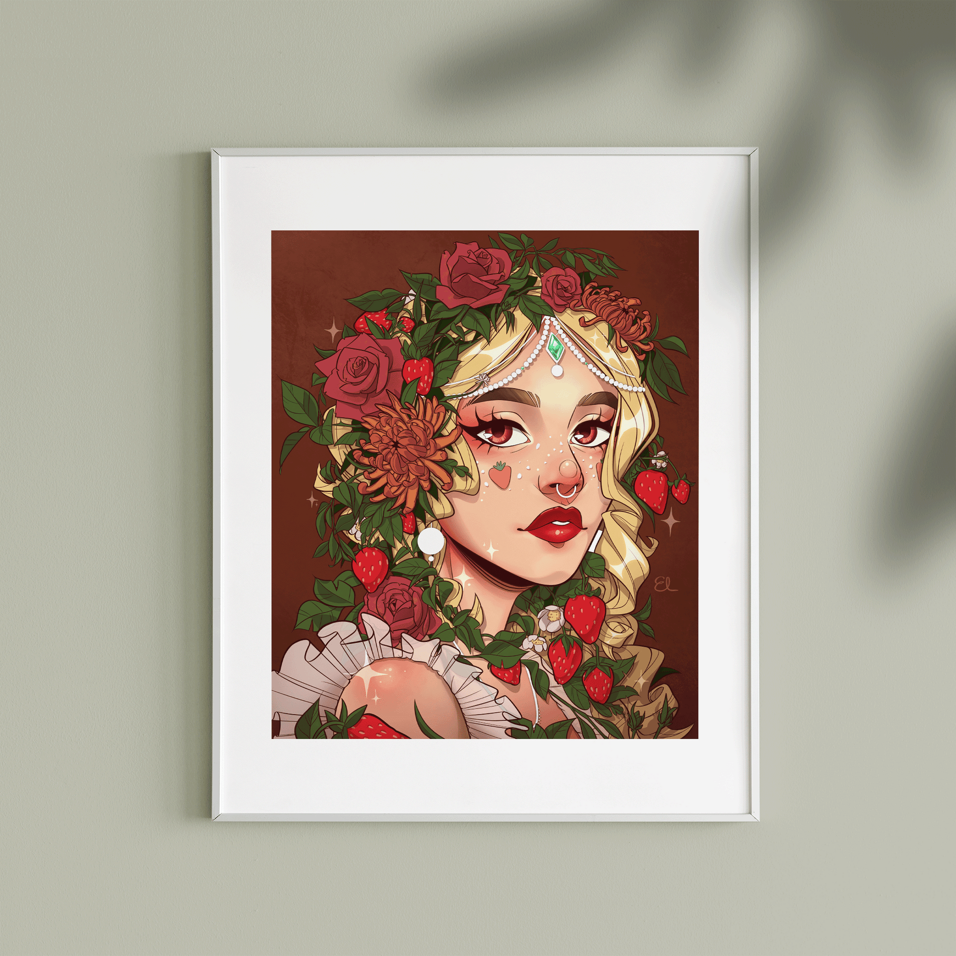 Indulge in the ethereal beauty of the RED FLOWERS LADY art print. This stunning illustration depicts a mystical flower lady, captivating the senses and inspiring imagination. Add a touch of magic and wonder to your space with this unique piece.